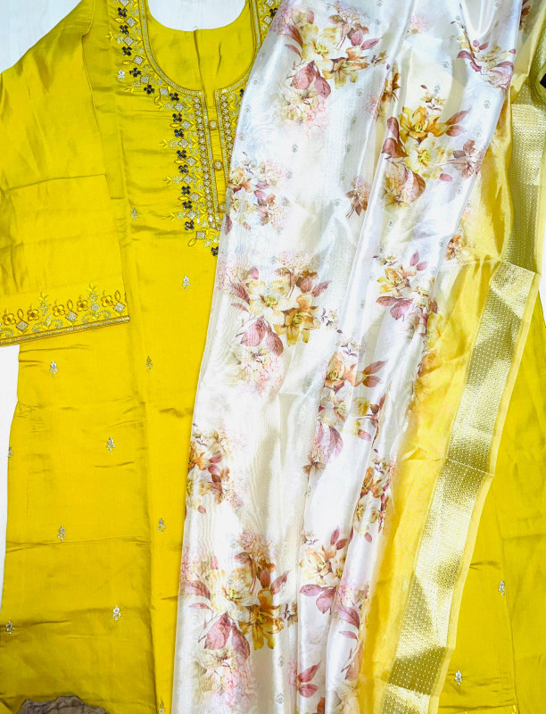 3-piece Pakistani suit, crafted in a luxurious silk-blend fabric