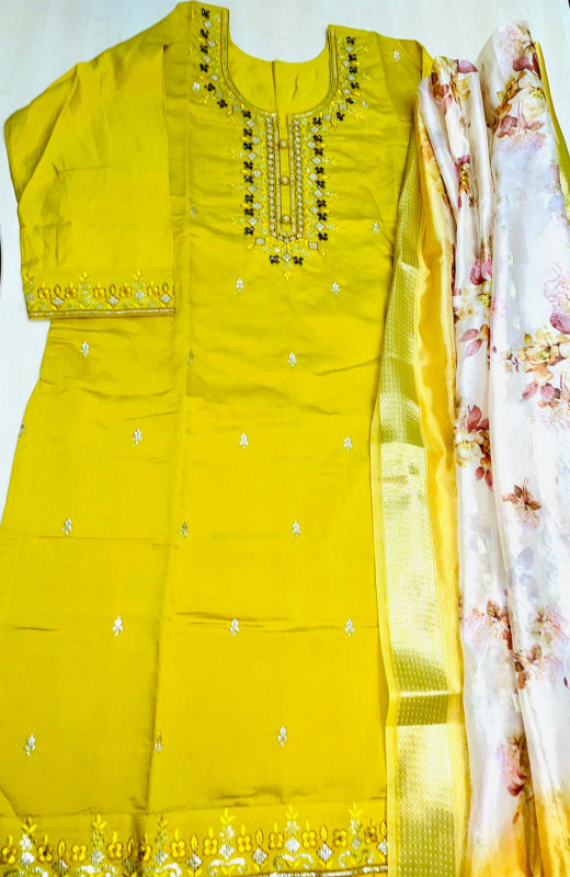 3-piece Pakistani suit, crafted in a luxurious silk-blend fabric